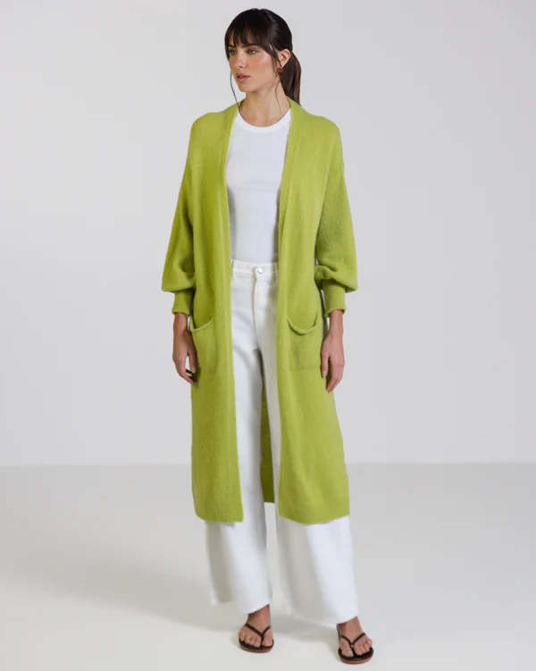 Made in Italy from an ultra-soft baby alpaca blend, this cardigan offers a sumptuous feel against the skin. Its relaxed silhouette features comfortable balloon sleeves and practical front pockets, making it a versatile piece for any occasion. The vibrant lime hue adds a refreshing pop of colour to your wardrobe.